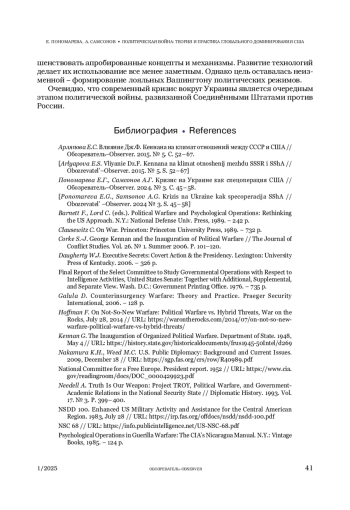 5. Corke S.-J. George Kennan and the Inauguration of Political Warfare // The Journal of Conflict Studies. Vol. 26. № 1. Summer 2006. P. 101-120.