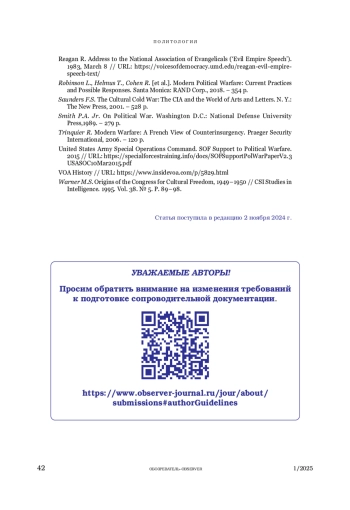 3. Barnett F., Lord C. (eds.). Political Warfare and Psychological Operations: Rethinking the US Approach. N.Y.: National Defense Univ. Press, 1989. - 242 р.