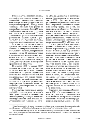 Автор анализирует состояния стратегического планирования и политики в СССР и России в последние десятилетия, качество принимаемых политических решений и правящей элиты СССР/России.