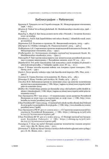 4. Подберёзкин А.И. Современная стратегия национальной безопасности России. М.: Международные отношения, 2024. - 1594 с.