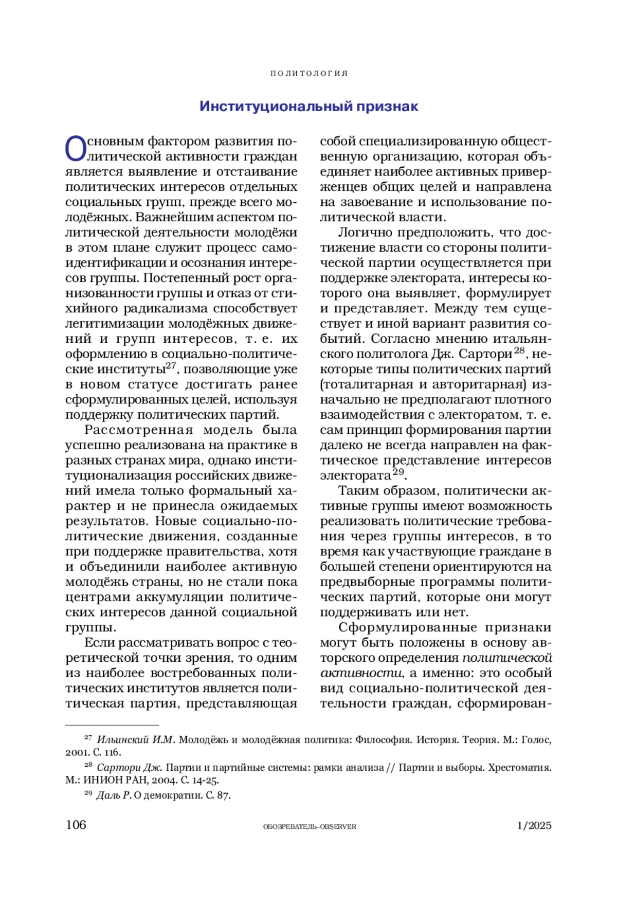 Статья: Политическая активность молодёжи. Понятие, содержание, особенности электорального поведения (2025)