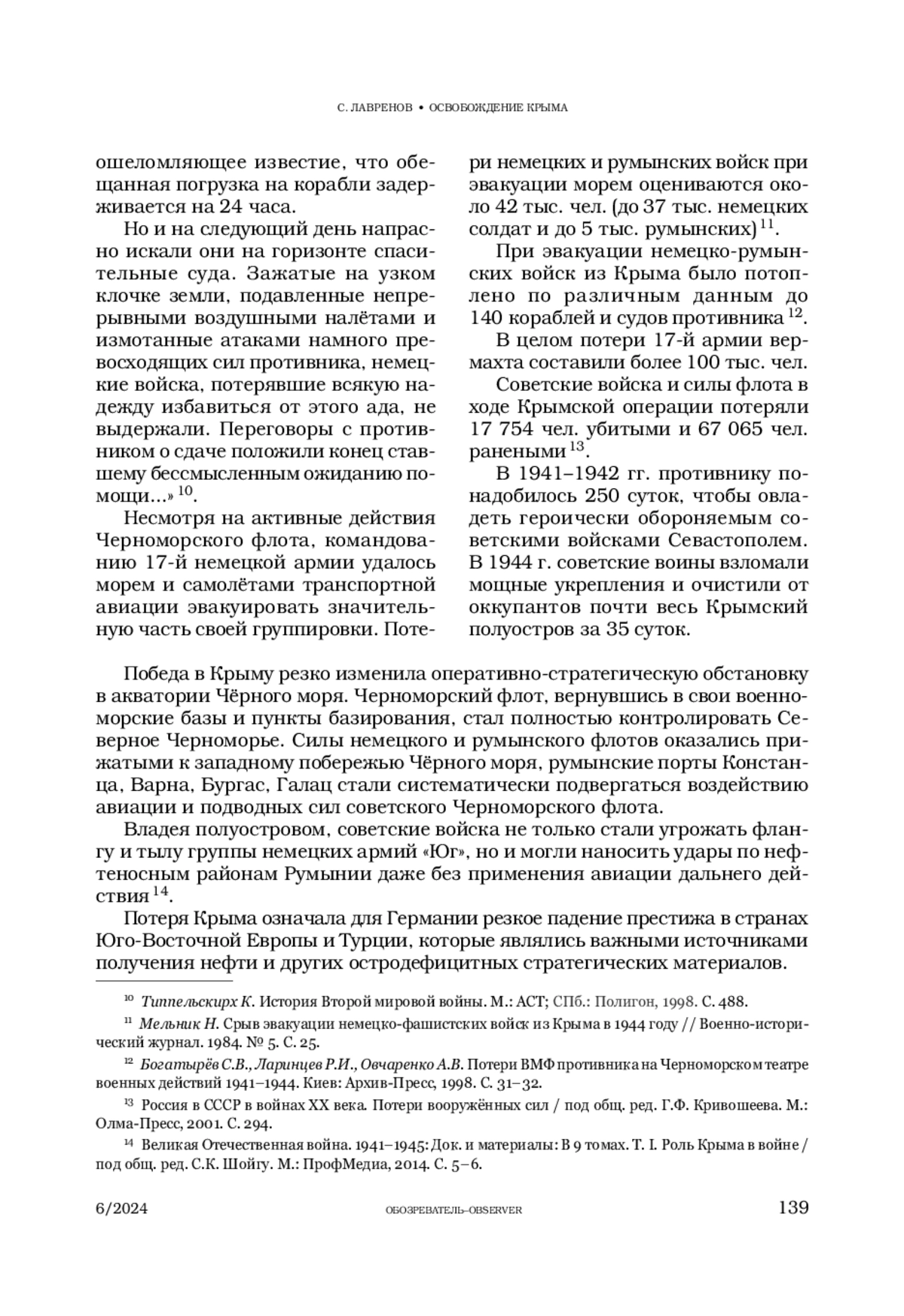 10. Мельник Н. Срыв эвакуации немецко-фашистских войск из Крыма в 1944 году // Военно-исторический журнал. 1984. № 5. С. 24-29.