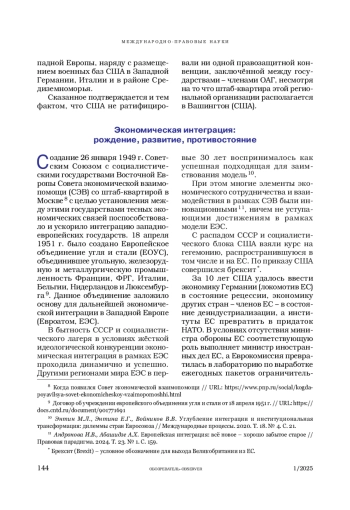 Статья: Интеграционные процессы регионального и межрегионального уровней в глобальном измерении. История и современное состояние (2025)