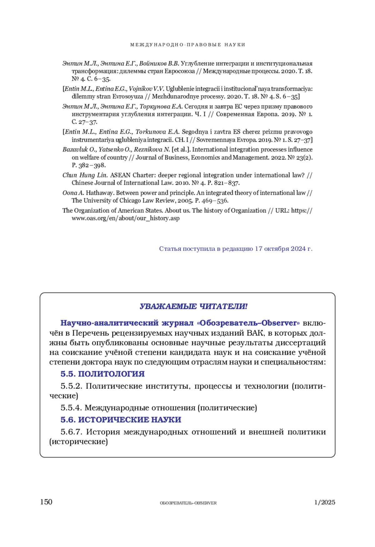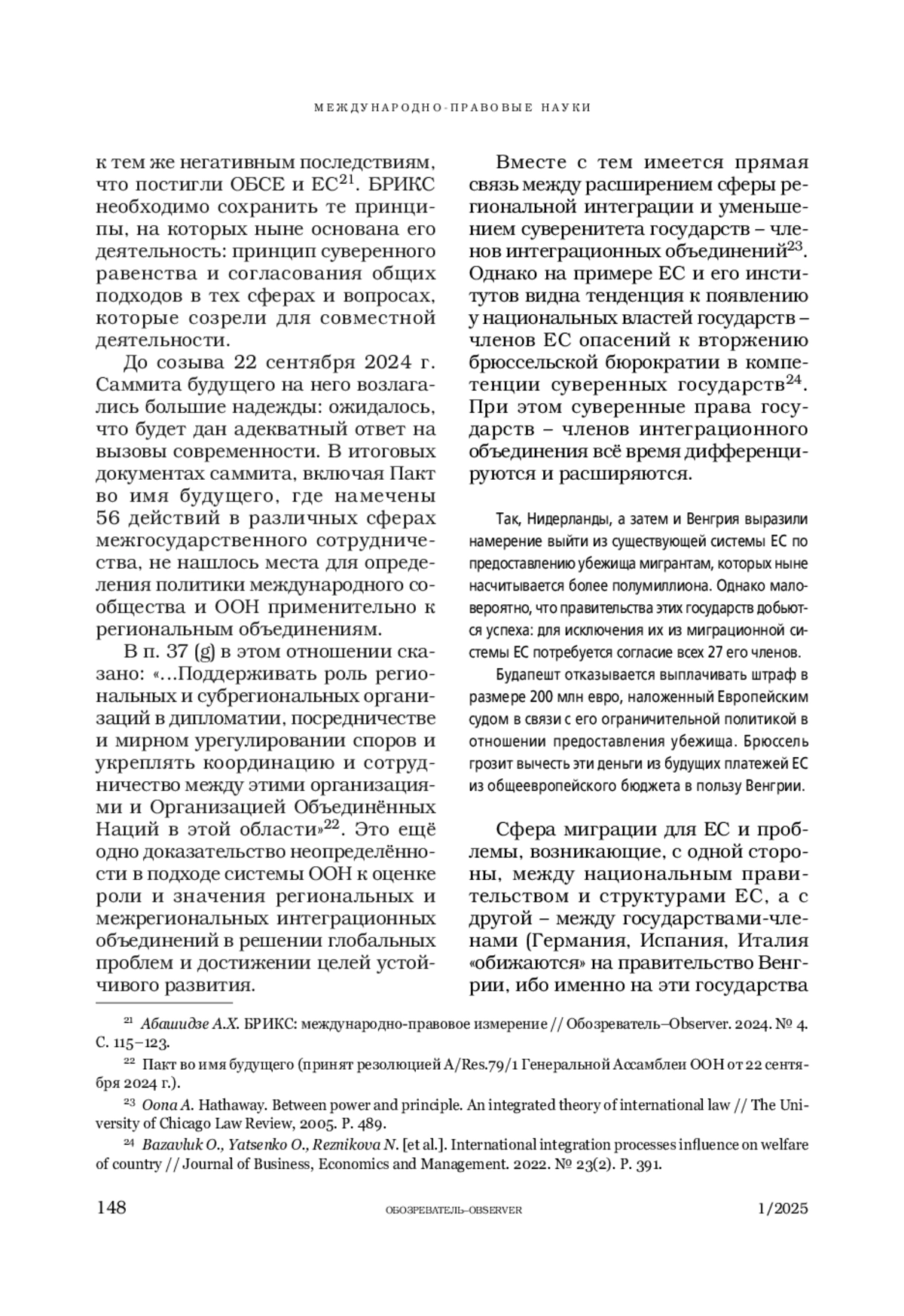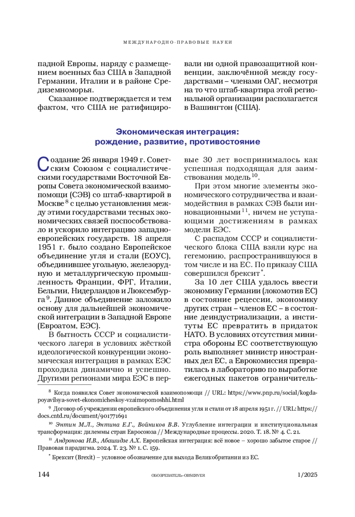 АБАШИДЗЕ А. Х. ИНТЕГРАЦИОННЫЕ ПРОЦЕССЫ РЕГИОНАЛЬНОГО И МЕЖРЕГИОНАЛЬНОГО УРОВНЕЙ В ГЛОБАЛЬНОМ ИЗМЕРЕНИИ. ИСТОРИЯ И СОВРЕМЕННОЕ СОСТОЯНИЕ // ОБОЗРЕВАТЕЛЬ. 2025. № 1