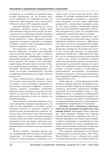 Актуализация совершенствования подходов к управлению IT-компаниями связана с государственной задачей по развитию высокотехнологических производств в структуре экономики РФ, а также с задачей по снижению оттока высококвалифицированных кадров за рубеж. IT-компании являются передовыми в области использования инноваций, в том числе касающихся процессов управления. В компаниях используется проектный подход, матричные структуры управления, разрабатываются ключевые показатели эффективности проектов, внедряют MBO-планирование. Одной из передовых компаний на рынке информационных технологий является корпорация Huawei, имеющая с своей структуре центр разработки и развития компетенций в г. Новосибирске. Корпорация не размещает акции на фондовом рынке, поэтому не возникает необходимости перенаправлять часть прибыли на выплату дивидендов, что расширяет возможности компании в области инвестиций в долгосрочные проекты. К особенностям проектного менеджмента в корпорации Huawei относятся, во-первых, два контура разработки инновационных проектов в России и в КНР, во-вторых, большое количество НИОКР-проектов технологий, находящихся на разных стадиях технологического цикла, что требует разработки системы оценки зрелости технологий для получения максимального синергетического эффекта от взаимодействия внутри проектов.