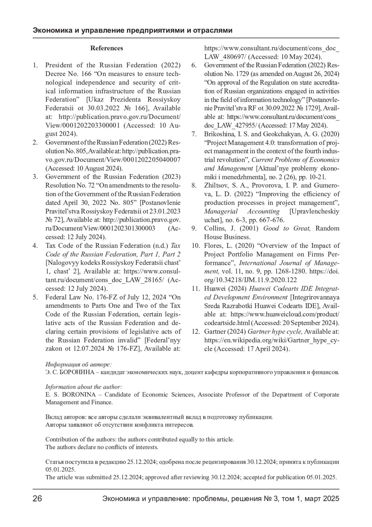 7. Брикошина И. С., Геокчакян А. Г. Project Management 4.0: трансформация управления проектами в условиях четвертой промышленной революции // Актуальные проблемы экономики и менеджмента. - 2020. - № 2 (26). - С. 10-21. EDN: SPITBR