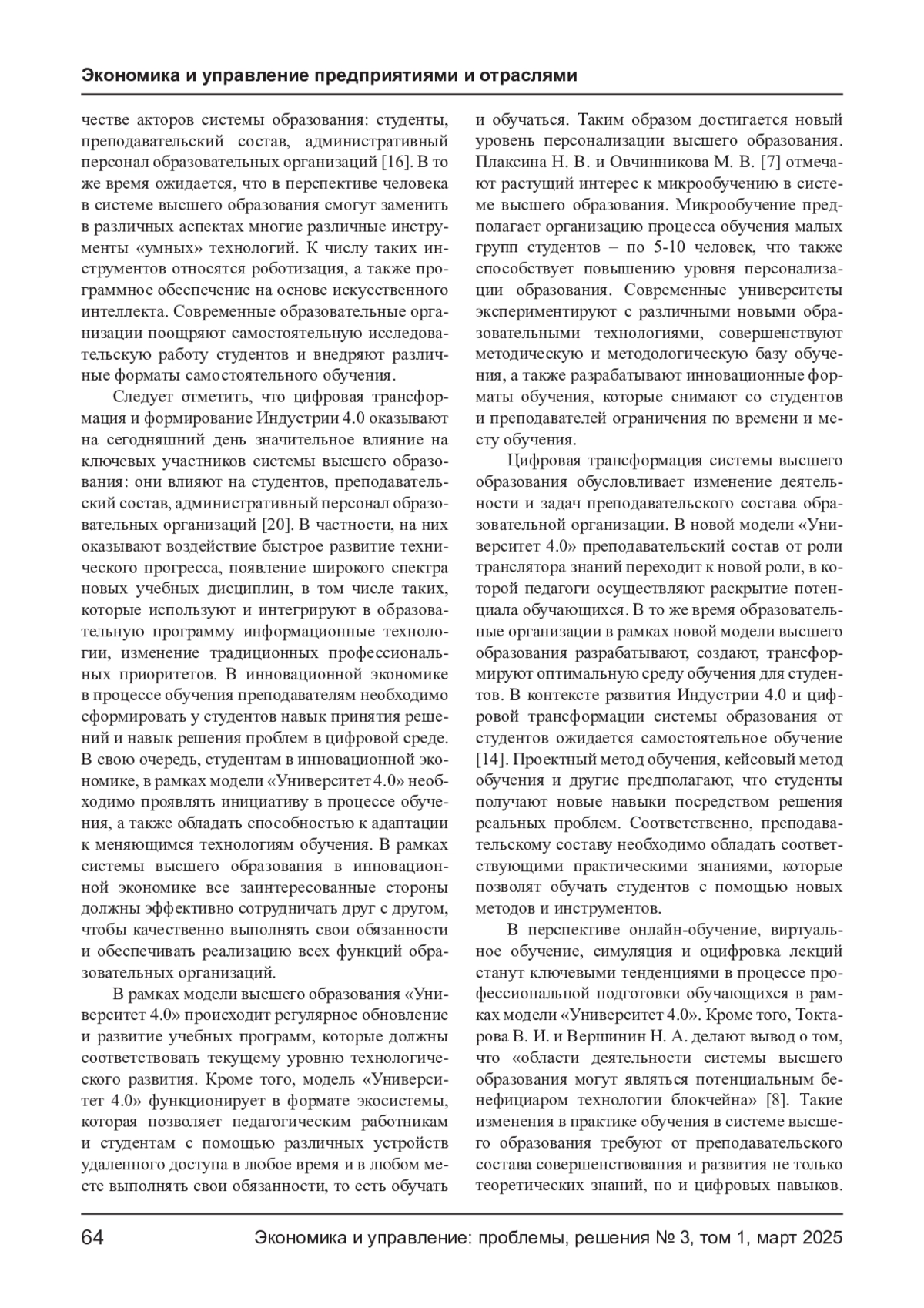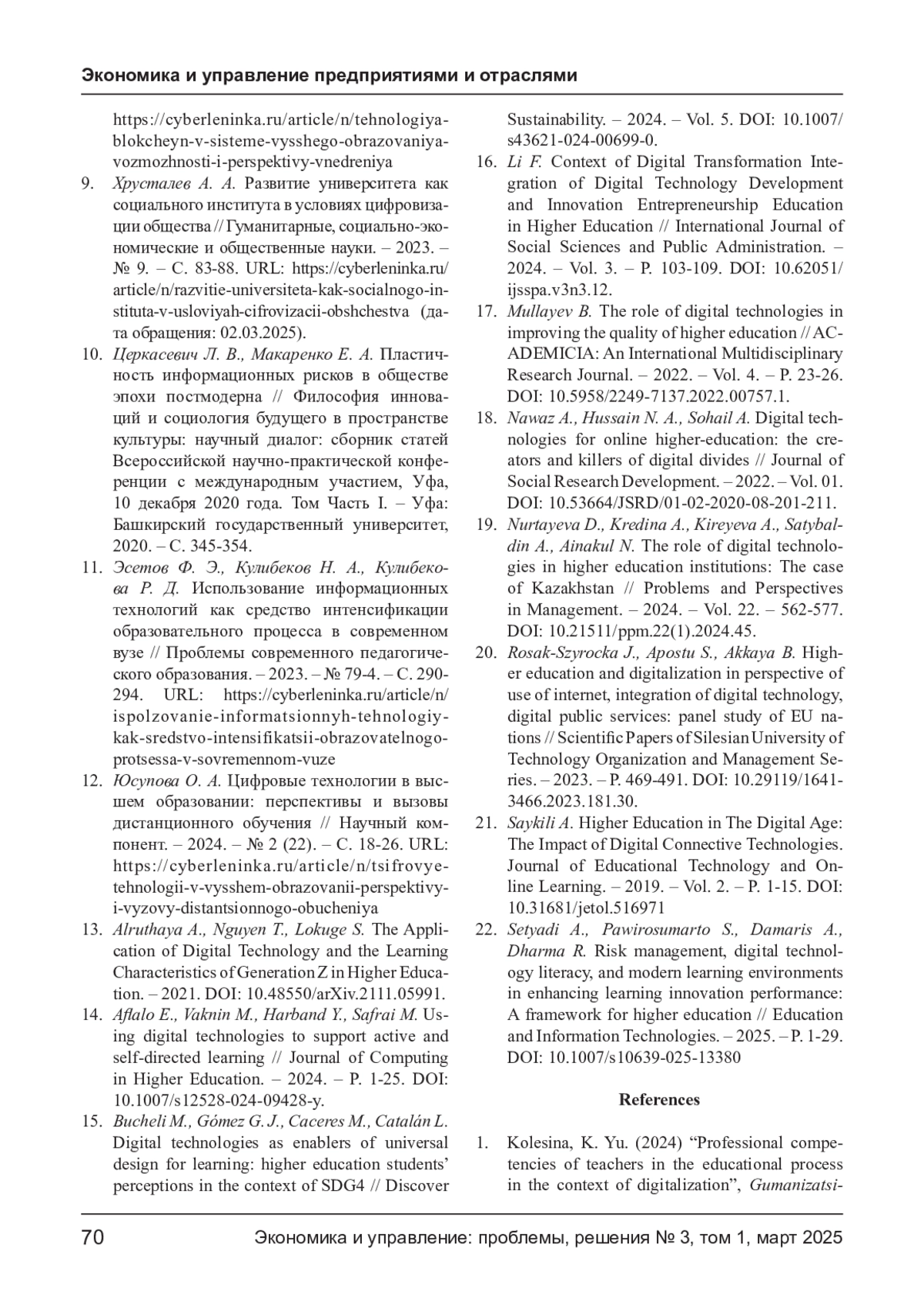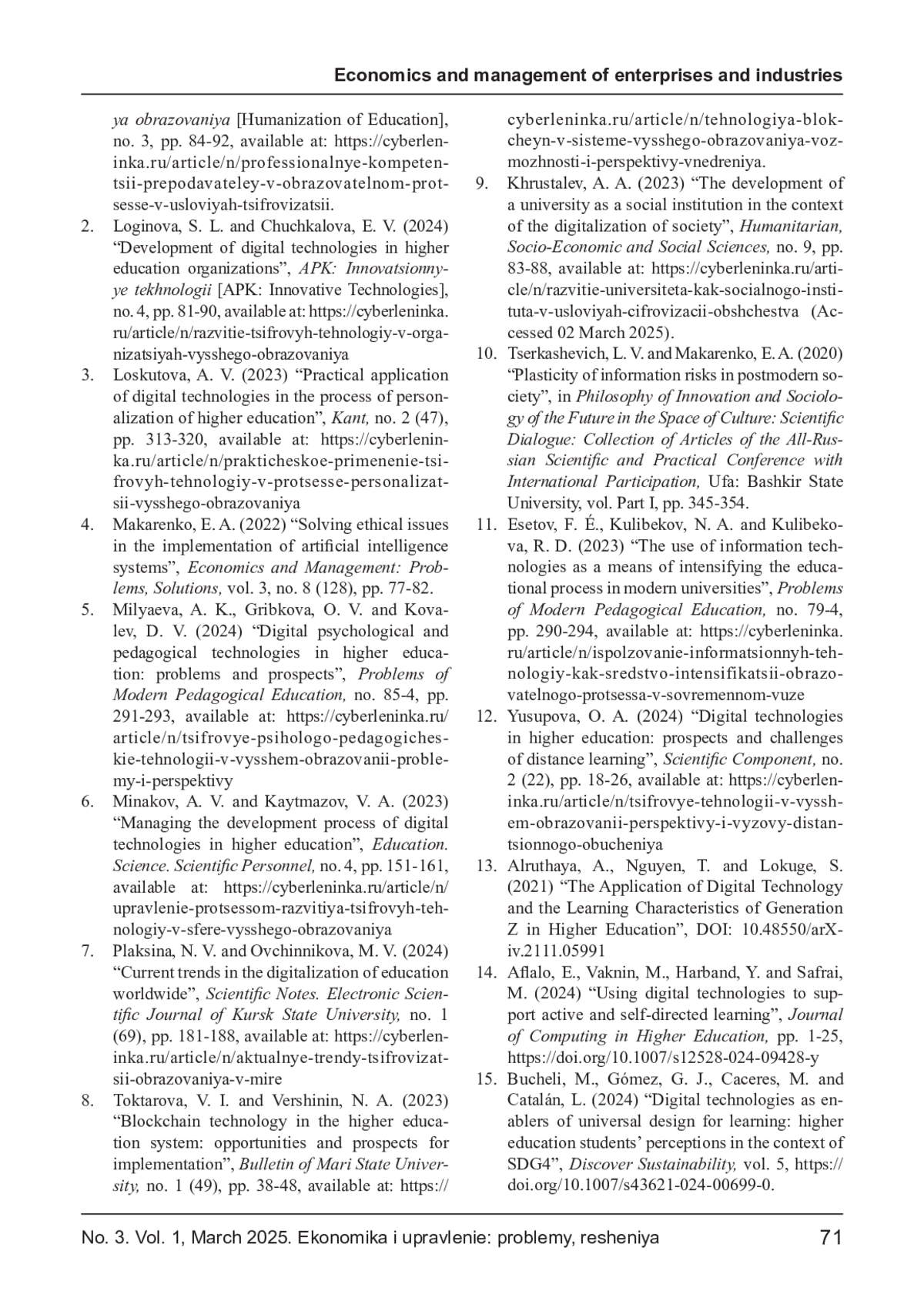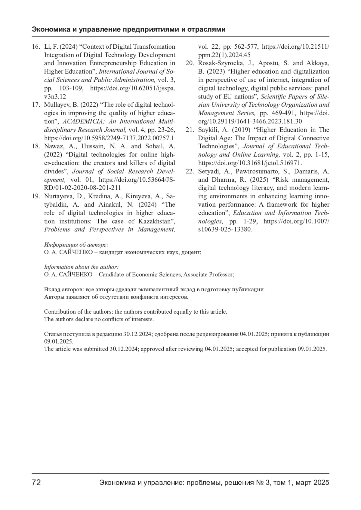 САЙЧЕНКО О. А. ИНТЕГРАЦИЯ ЦИФРОВЫХ ТЕХНОЛОГИЙ В УПРАВЛЕНИЕ ОБРАЗОВАТЕЛЬНОЙ ДЕЯТЕЛЬНОСТЬЮ ВЫСШИХ УЧЕБНЫХ ЗАВЕДЕНИЙ // ЭКОНОМИКА И УПРАВЛЕНИЕ: ПРОБЛЕМЫ, РЕШЕНИЯ. 2025. ТОМ 1 № 3