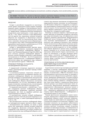 6. Серегина Е.В. Сложности реализации права граждан на необходимую оборону // Социально-политические науки. 2018. № 4. EDN: UYXNBZ