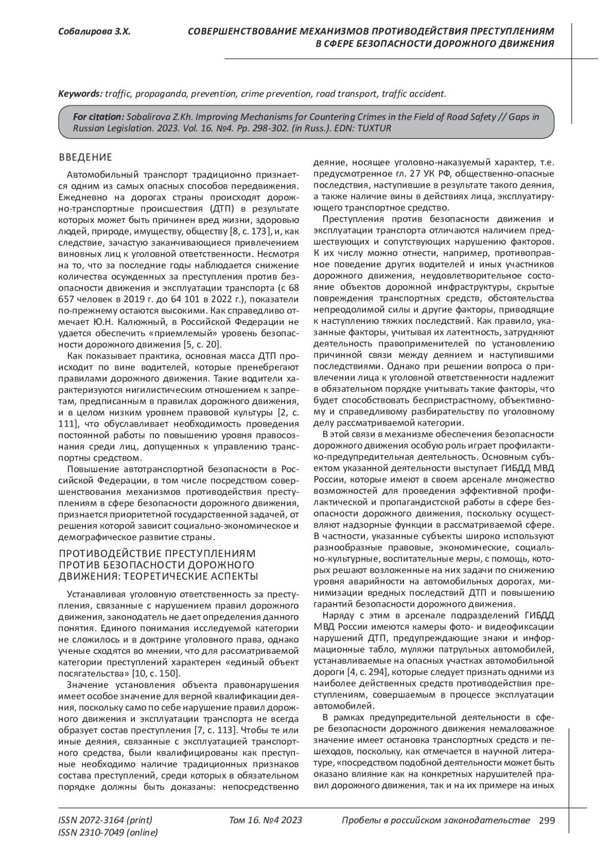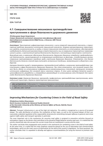 Kalyuzhny Yu.N. Ensuring road safety in the Russian Federation: conceptual organizational and legal framework: dis. … doc. legal Sciences. M., 2021.