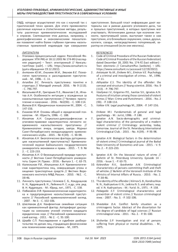 10. Колесников Р.В., Ильяшенко А.Н. Криминологическая характеристика лиц, совершающих угоны и хищения транспортных средств // Вестник Воронежского института МВД России. - 2010. - №2. - С. 38-46. EDN: MQQELF