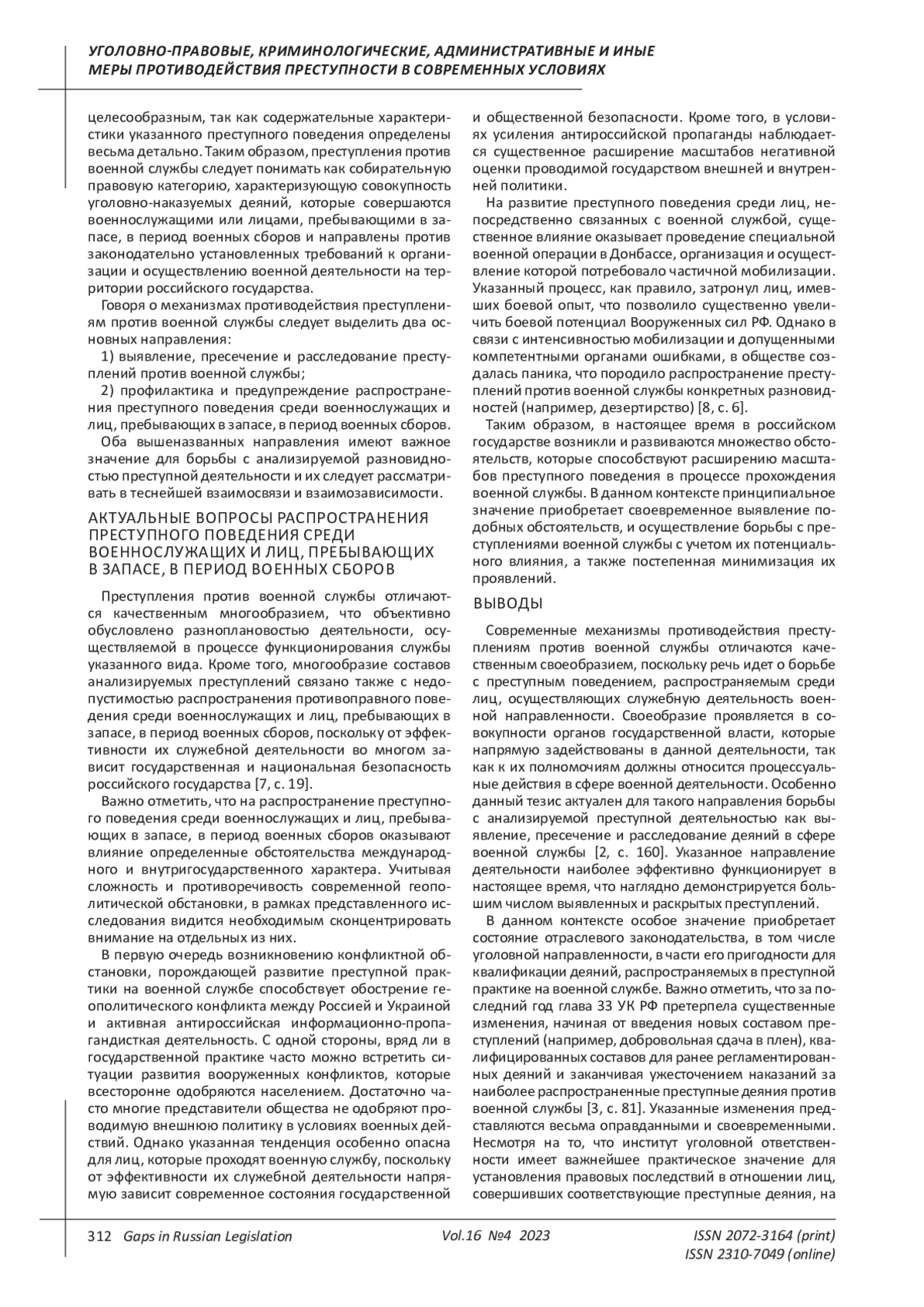 Reshnyak M.G. On the issue of improving the criminal legislation on liability for crimes against military service // Modern law. 2023. No. 2. P. 78-82. EDN: OLJOFH