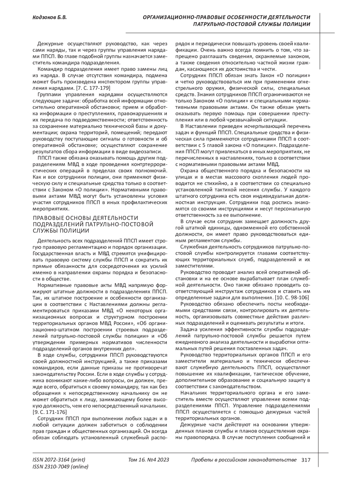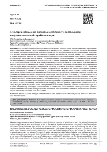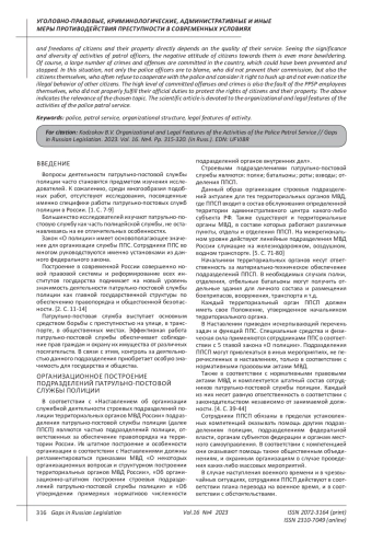 7. Карнаухов О.П. Сравнительный анализ основного нормативного правового акта, регламентирующего деятельность патрульно-постовой службы полиции // Актуальные проблемы борьбы с преступлениями и иными правонарушениями. 2022. № 22. С. 177-179. EDN: FJTQND