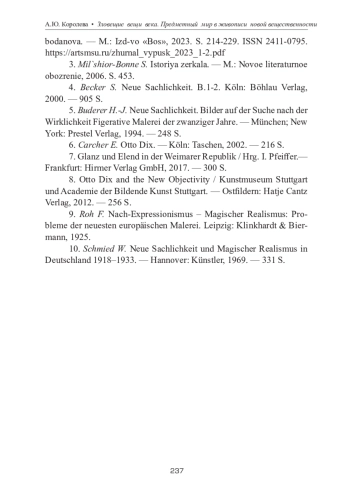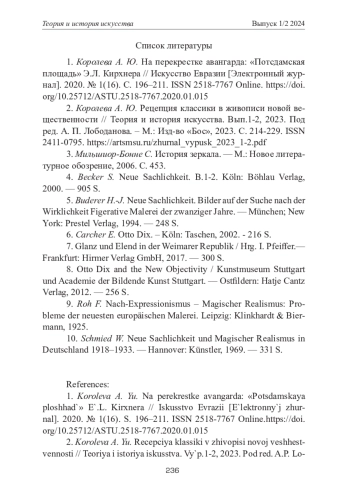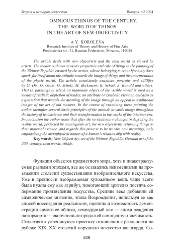 КОРОЛЕВА А. Ю. ЗЛОВЕЩИЕ ВЕЩИ ВЕКА. ПРЕДМЕТНЫЙ МИР В ЖИВОПИСИ НОВОЙ ВЕЩЕСТВЕННОСТИ // ТЕОРИЯ И ИСТОРИЯ ИСКУССТВА. 2024. № 1-2