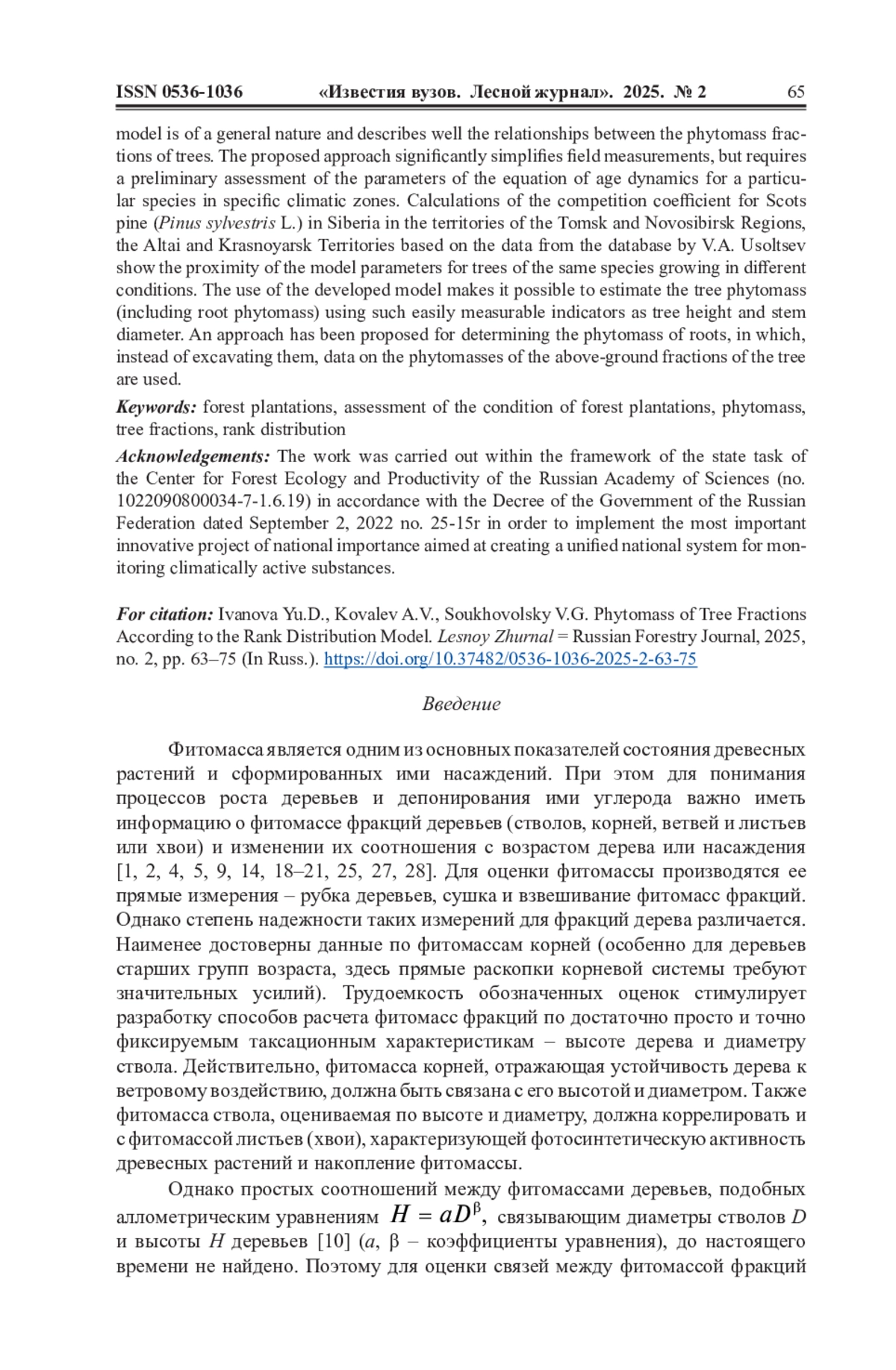 Isaev A.S., Ovchinnikova T.M., Soukhovolsky V.G. Distribution of Phytomass of Trees and Plantations by Fractions: a Competition Model. Problems of Environmental Monitoring and Ecosystem Modeling. St. Petersburg, Gidrometeoizdat Publ., 2007, vol. 21, pp. 232-250. (In Russ.).
