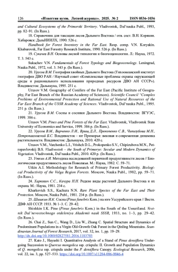 8. Ильченко Т.П., Лауве Л.С., Урусов В.М. Изменчивость сосны погребальной в Приморье в связи с особенностями климата // Редкие и исчезающие древесные растения юга Дальнего Востока. Владивосток, 1978. С. 28-44.