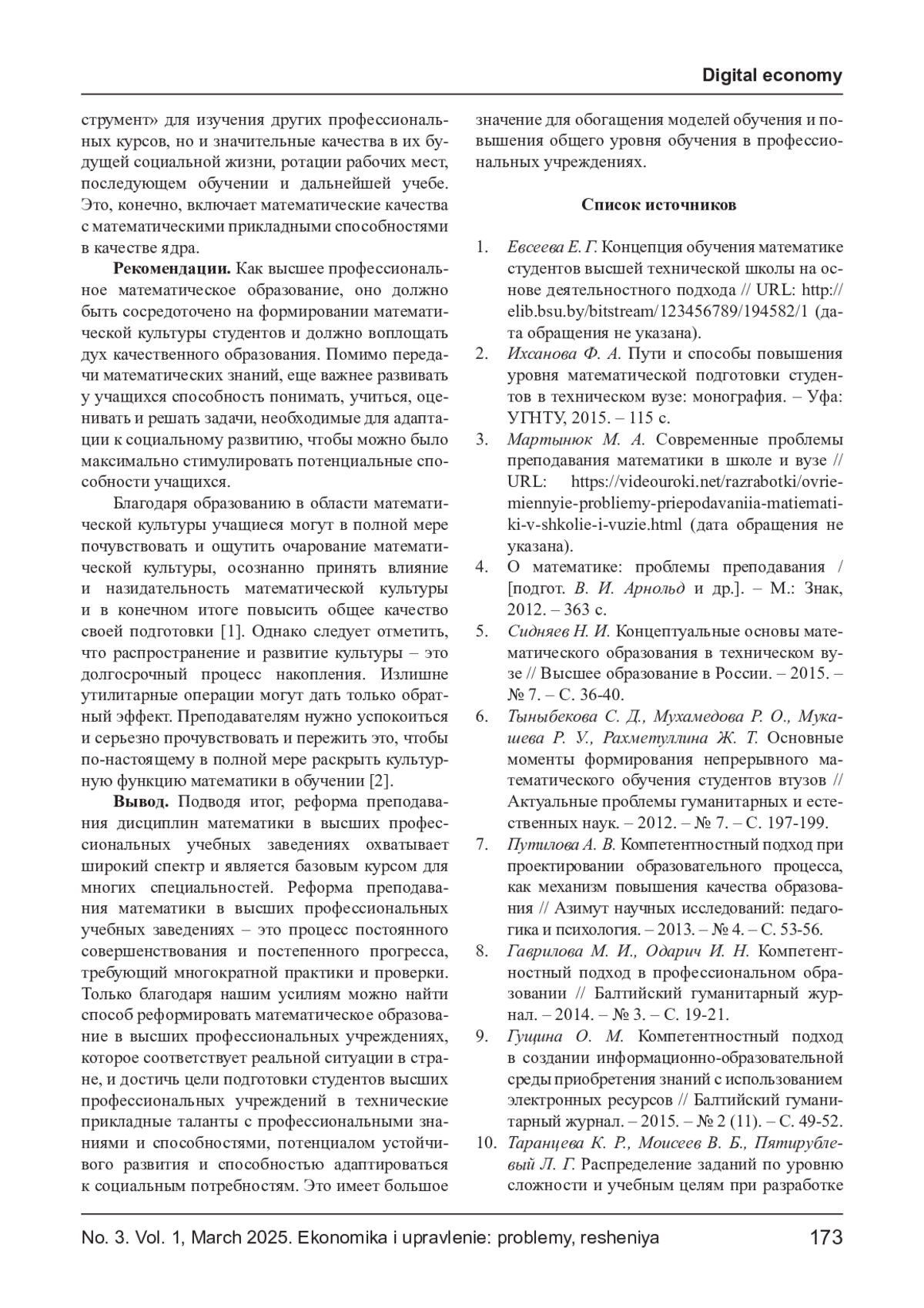 5. Сидняев Н. И. Концептуальные основы математического образования в техническом вузе // Высшее образование в России. - 2015. - № 7. - С. 36-40. EDN: UFGRSN