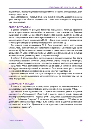 8. Разработка подхода к кластеризации районов на базе инструментального средства машинного обучения KNIME / Е. М. Смирнова [и др.] // Известия высших учебных заведений. Серия “Экономика, финансы и управление производством” [Ивэкофин]. 2021. № 4. С. 165-175. URL: https://ecofin-isuct.ru/article/view/4079 (дата обращения: 20.02.2025).