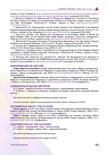 4. Зуев М. А., Шибаев В. М., Баланев К. С. Разработка модели K-Means для выявления наиболее выгодных предложений на рынке недвижимости Москвы // Информатика. Экономика. Управление. 2024. Т. 3, № 2. С. 212-218. DOI: 10.47813/2782-5280-2024-3-2-0212-0218