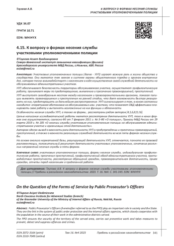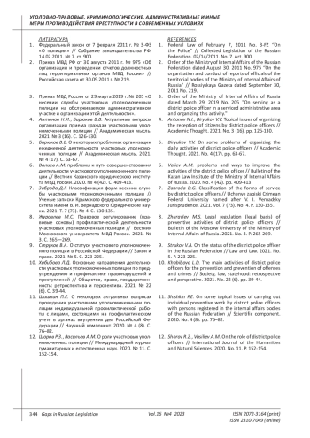 12. Шоров Р.З., Васильев А.М. О роли участковых уполномоченных полиции // Международный журнал гуманитарных и естественных наук. 2020. № 11. С. 152-154. EDN: QPCGYL