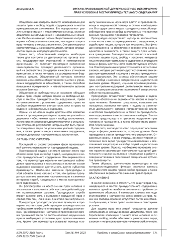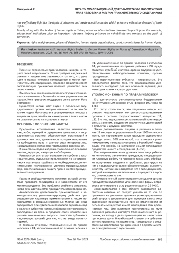 Статья: ОРГАНЫ ПРАВОЗАЩИТНОЙ ДЕЯТЕЛЬНОСТИ ПО ОБЕСПЕЧЕНИЮ ПРАВ ЧЕЛОВЕКА В МЕСТАХ ПРИНУДИТЕЛЬНОГО СОДЕРЖАНИЯ (2023)