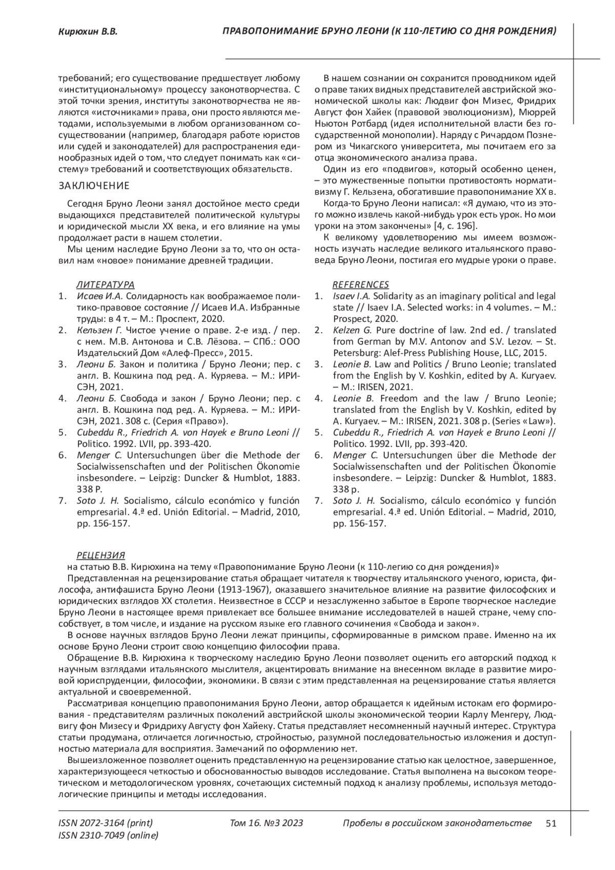4. Леони Б. Свобода и закон / Бруно Леони; пер. с англ. В. Кошкина под ред. А. Куряева. - М.: ИРИСЭН, 2021. 308 с. (Серия “Право”).