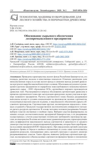 Zagidullin D.A., Gerts E.F. Prospects for Harvesting Wood LLC “Kronoshpan OSB”. Scientific Сreativity of Youth - for the Forestry Complex of Russia: Materials of the XIX All-Russian (National) Scientific and Technical Conference of Students and Postgraduate Students. Ekaterinburg, Ural State Forestry Engineering University, 2023, pp. 129-132. (In Russ.). EDN: KLHECA