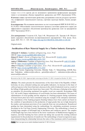 24. Yakusheva M., Mokhirev A., Dudin P. Specific Features of Wood Resources Processing at Forest Industry Enterprises. BIO Web of Conferences, 2024, vol. 93, art. no. 01021. DOI: 10.1051/bioconf/20249301021 EDN: SKPSIG