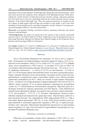 12. Солдатов А.В., Коркин Е.С. Методика расчета выхода объема круглых лесоматериалов при раскряжевке березовых и осиновых хлыстов // Леса Урала и хозяйство в них. 2006. No 27. С. 303-308. EDN: YGXWVX