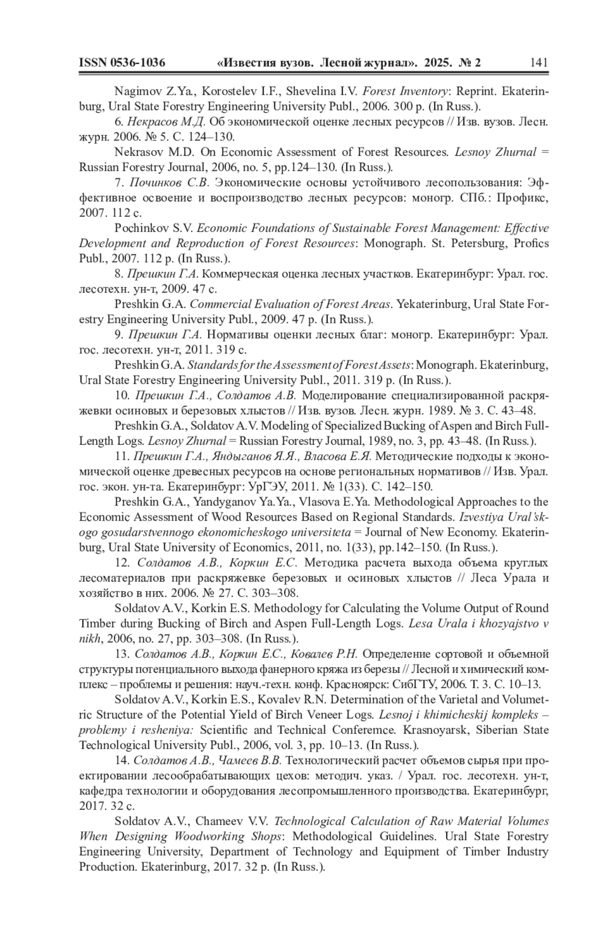 22. Soldatov A.V., Preshkin G.A. Metodologia delle Norme Sulla Fisclita e Valove dei Uscita Assortimento Accessibilita Technologica delle Materie Prime di Ligno Inoggetti di Gestione Forestale. Italian Science Review, 2016, no. 1 (34), pp. 98-103. (In Ital.).