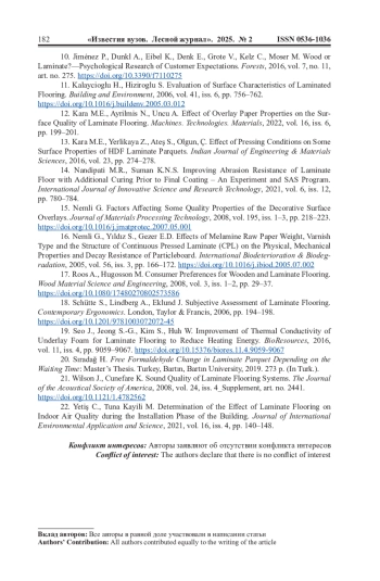 12. Kara M.E., Ayrilmis N., Uncu A. Effect of Overlay Paper Properties on the Surface Quality of Laminate Flooring. Machines. Technologies. Materials, 2022, vol. 16, iss. 6, pp. 199-201.