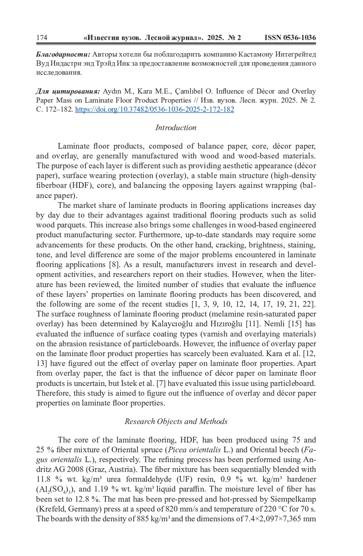 15. Nemli G. Factors Affecting Some Quality Properties of the Decorative Surface Overlays. Journal of Materials Processing Technology, 2008, vol. 195, iss. 1-3, pp. 218-223. DOI: 10.1016/j.jmatprotec.2007.05.001 EDN: KLVESP