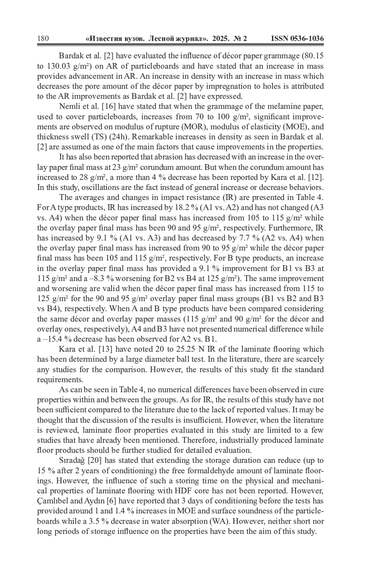 13. Kara M.E., Yerlikaya Z., Ateş S., Olgun, Ç. Effect of Pressing Conditions on Some Surface Properties of HDF Laminate Parquets. Indian Journal of Engineering & Materials Sciences, 2016, vol. 23, pp. 274-278.
