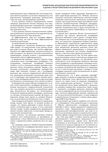 В другом деле компании Winstar Communications10 (должник) суд признал фактическим инсайдером должника компанию Lucent, сделки с которой должник совершил хоть и на независимых для сторон условиях, но в результате совершения которых (у должника образовалась существенная задолженность перед Lucent, возврат которой был обеспечен практически всем имуществом должника) компания Lucent приобрела возможность доминировать в отношениях с должником, навязывать ему условия определенных сделок, в том числе невыгодных для должника. Ситуация примечательна тем, что хотя сделки между организациями носили типичный для гражданского оборота характер (совершены «на расстоянии вытянутой руки»), но их последствия позволили компании Lucent определять и контролировать некоторые аспекты хозяйственной деятельности должника и находится в условиях экономической зависимости от кредитора, то есть в этой ситуации суд пришел к выводу о статусе инсайдера компании Lucent исключительно по критерию близости отношений