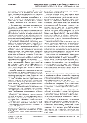 Egorov A.V. Influence of affiliation on bankruptcy. Civilistics, 2021, no. 2. С.67.