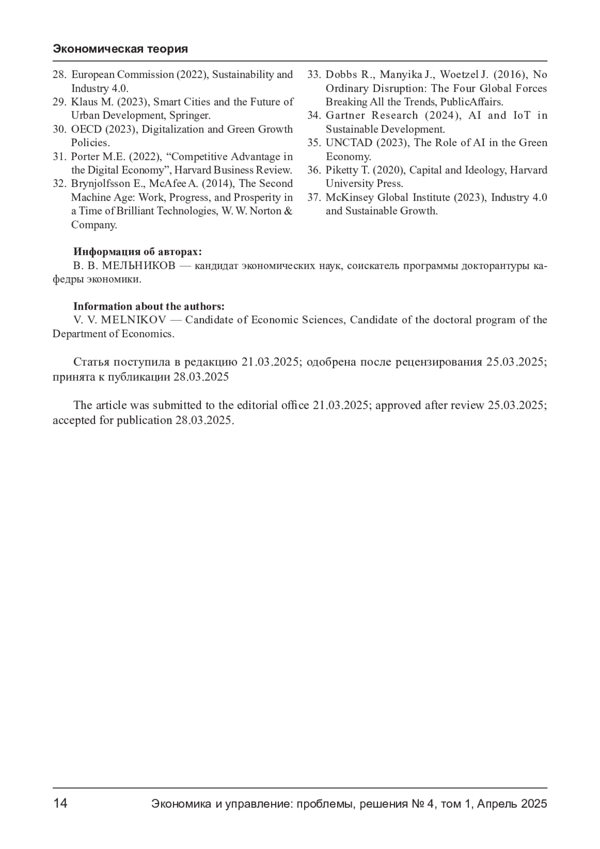 37. McKinsey Global Institute. Industry 4.0 and Sustainable Growth. - 2023.