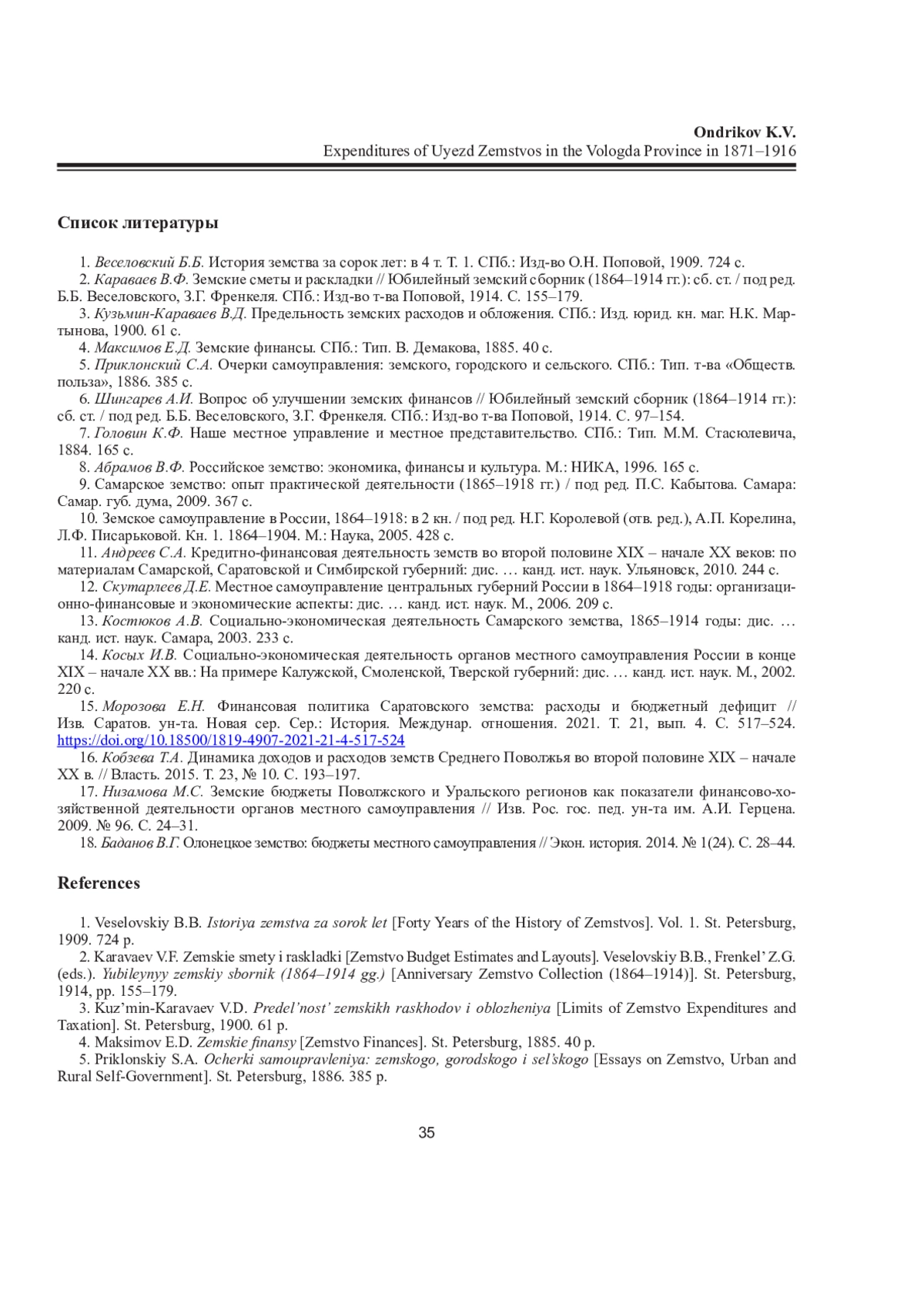 15. Морозова Е.Н. Финансовая политика Саратовского земства: расходы и бюджетный дефицит // Изв. Саратов. ун-та. Новая сер. Сер.: История. Междунар. отношения. 2021. Т. 21, вып. 4. С. 517-524. DOI: 10.18500/1819-4907-2021-21-4-517-524 EDN: HAGTKV