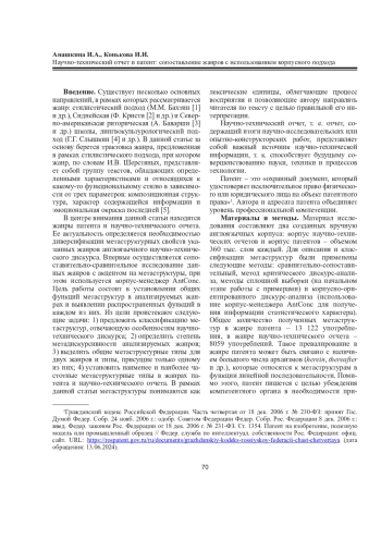 Статья посвящена анализу метаструктур современного англоязычного научно-технического дискурса на материале таких жанров, как научно-технический отчет и патент. Цель исследования - сопоставление метаструктур названных жанров с акцентом на такие функции, как диалогизация, линейная последовательность, подтверждение сказанного визуальным рядом, оценка, комментарий, толкование, привлечение внимания. Актуальность определяется необходимостью диверсификации метаструктурных свойств указанных жанров. Научная новизна исследования состоит в том, что в его рамках впервые осуществляется сравнительно-сопоставительный анализ метаструктур таких дискурсивных жанров, как научно-технический отчет и патент, посредством корпус-менеджера AntConc для установления функциональных характеристик метаструктур, что позволяет рассмотреть способы построения научно-технического дискурса с акцентом на категорию метадискурсивности. По результатам сравнительно-сопоставительного анализа делаются выводы о степени встречаемости в жанрах метаструктур и уровне метадискурсивности жанров. Помимо этого, описываются единые для обоих жанров функции метаструктур и функции, присущие только жанру научно-технического отчета, отмечаются самые популярные и менее употребляемые функции метаструктур в характеризуемых жанрах и предлагаются возможные причины такой частотности. Материал исследования включает тексты современных научно-технических отчетов и патентов, представленных корпусами объемом 360 тыс. слов каждый. Теоретическая значимость статьи состоит в диверсификации метаструктур и способов их употребления в жанрах англоязычного научно-технического дискурса. Практическая ценность связана с применением полученных результатов при самостоятельном составлении англоязычных текстов, относящихся к жанрам научно-технического отчета и патента, с целью построения успешной научной коммуникации.