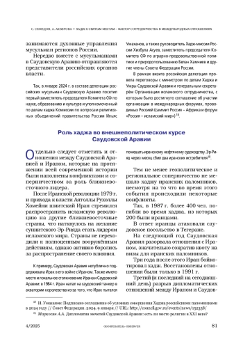 3. Маркосян А.А. Дипломатия мечетей Саудовской Аравии: есть ли место религии в XXI веке? // Via in tempore. История. Политология. 2023. № 1(50). С. 277-285.