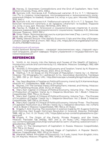 2. Рикардо Д. Начала политической экономии и податного обложения / перевод. Н. Рязанов. Москва: Издательство Юрайт, 2023. 310 с.