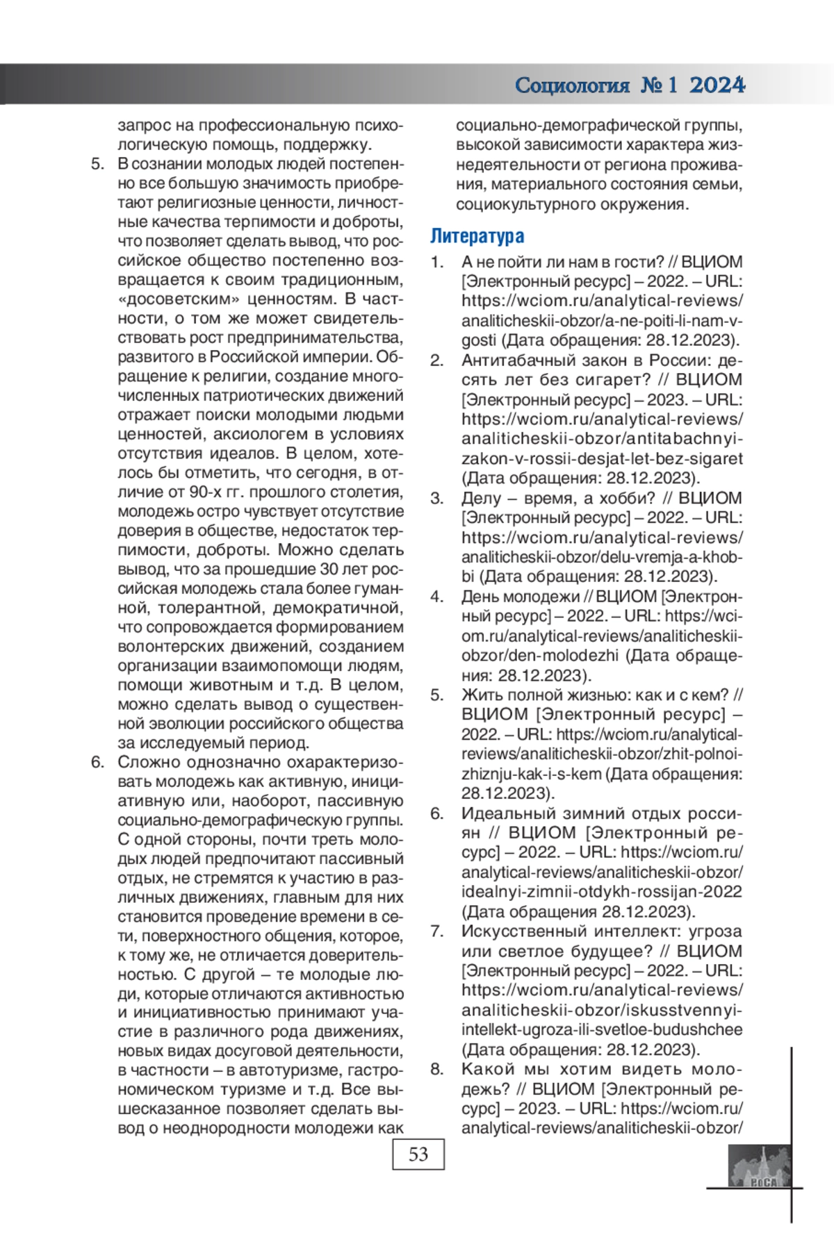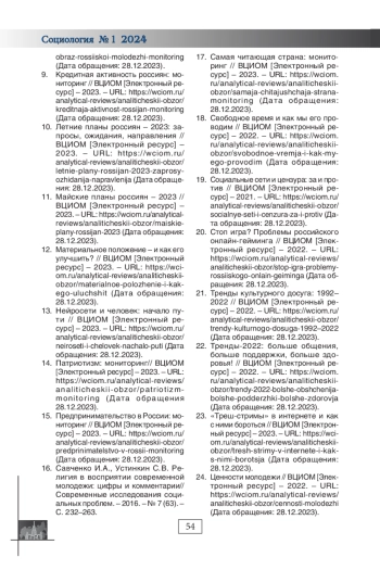 8. Какой мы хотим видеть молодежь? // ВЦИОМ [Электронный ресурс] - 2023. - URL: https://wciom.ru/analytical-reviews/analiticheskii-obzor/obraz-rossiiskoi-molodezhi-monitoring (Дата обращения: 28.12.2023).