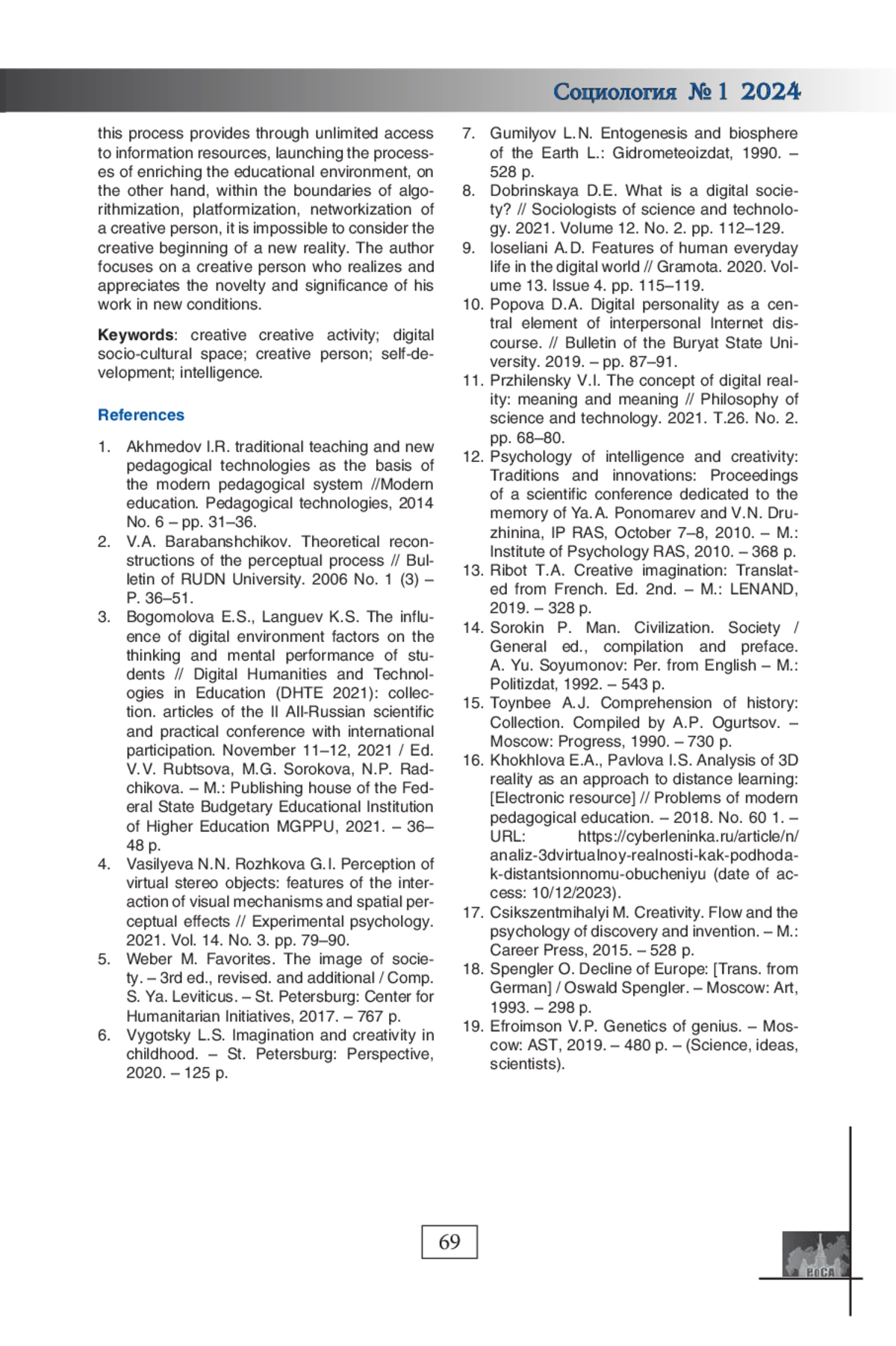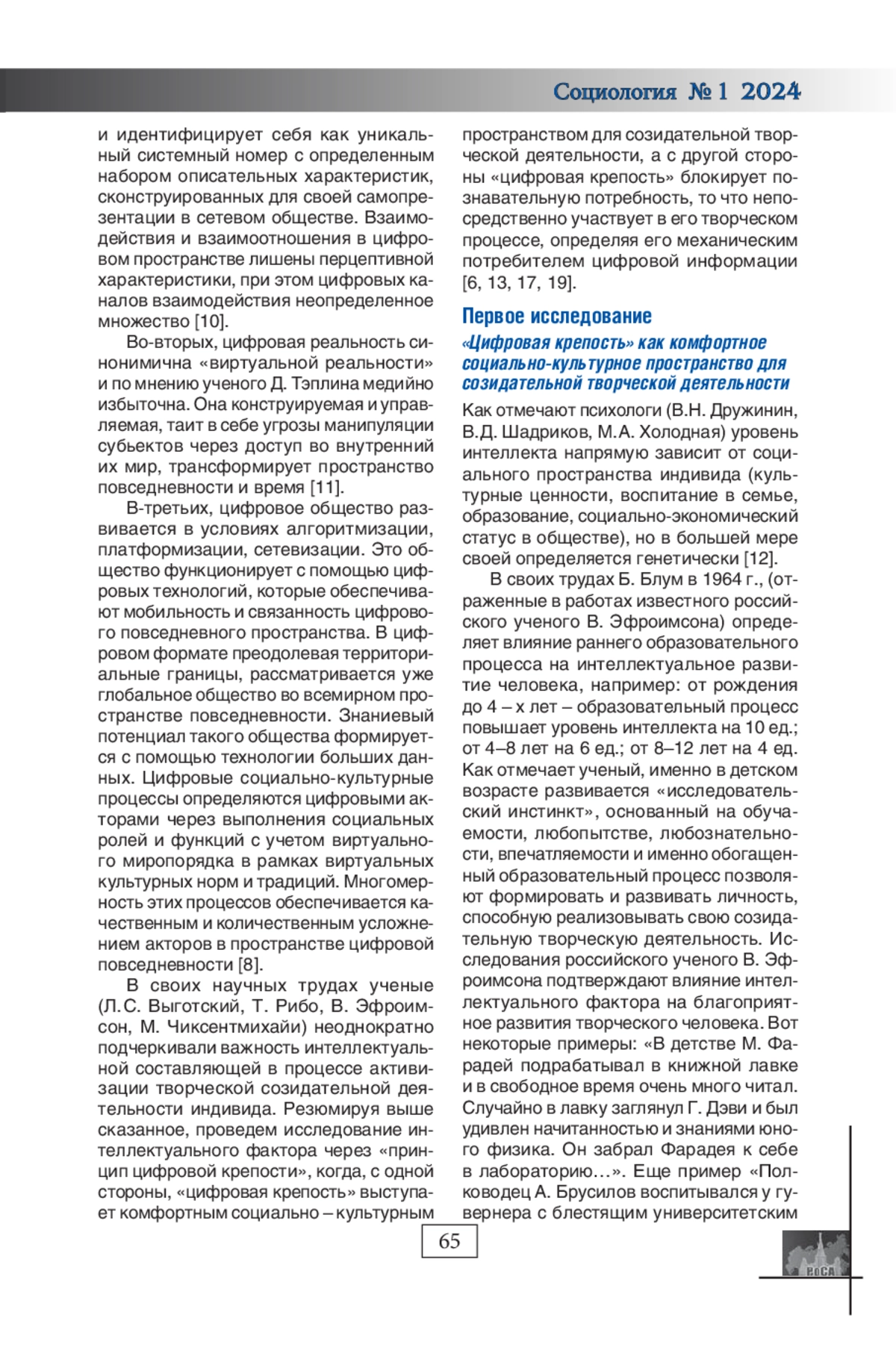 8. Добринская Д.Е. Что такое цифровое общество? // Sociologi of science and technology. 2021. Volume 12. № 2. С. 112-129.