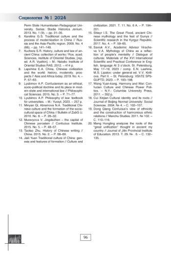 11. Минянь Ци, Абрамова Н.А. Традиционная китайская культура и формирование социокультурного пространства Китая // Вестник ЗабГ У. 2010. № 8. - С. 26-32.