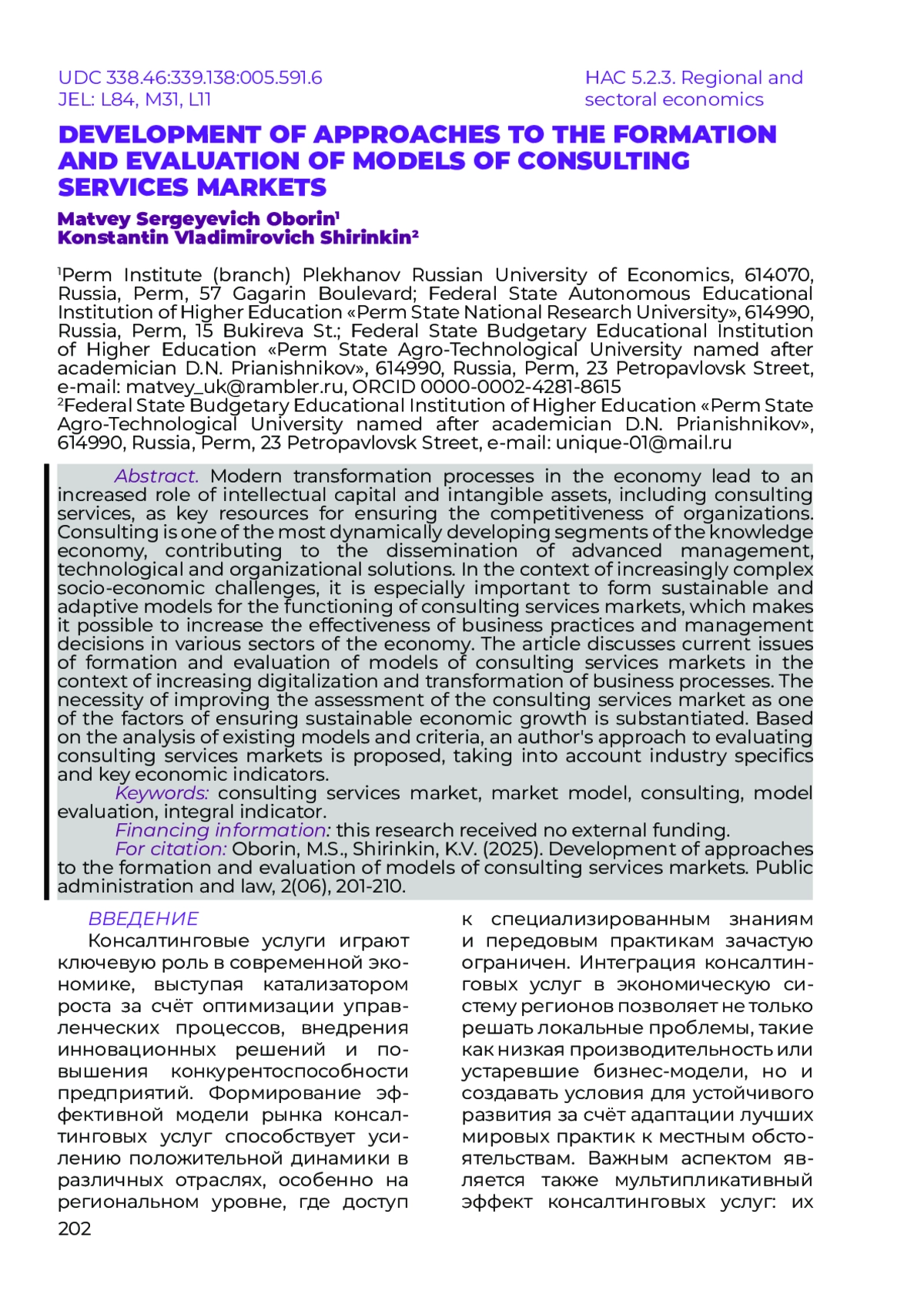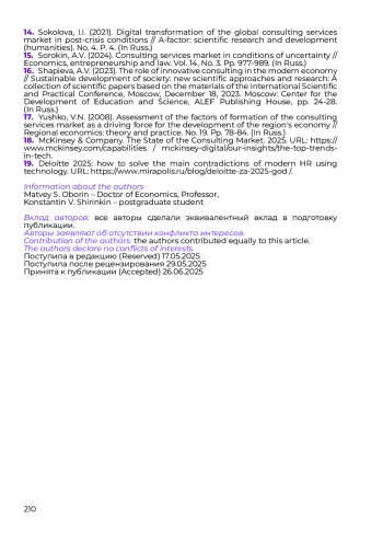 15. Сорокин А.В. Рынок консалтинговых услуг в условиях неопределённости // Экономика, предпринимательство и право. 2024. Т. 14, № 3. С. 977-989.