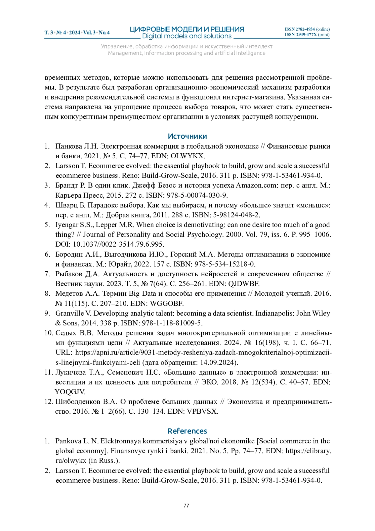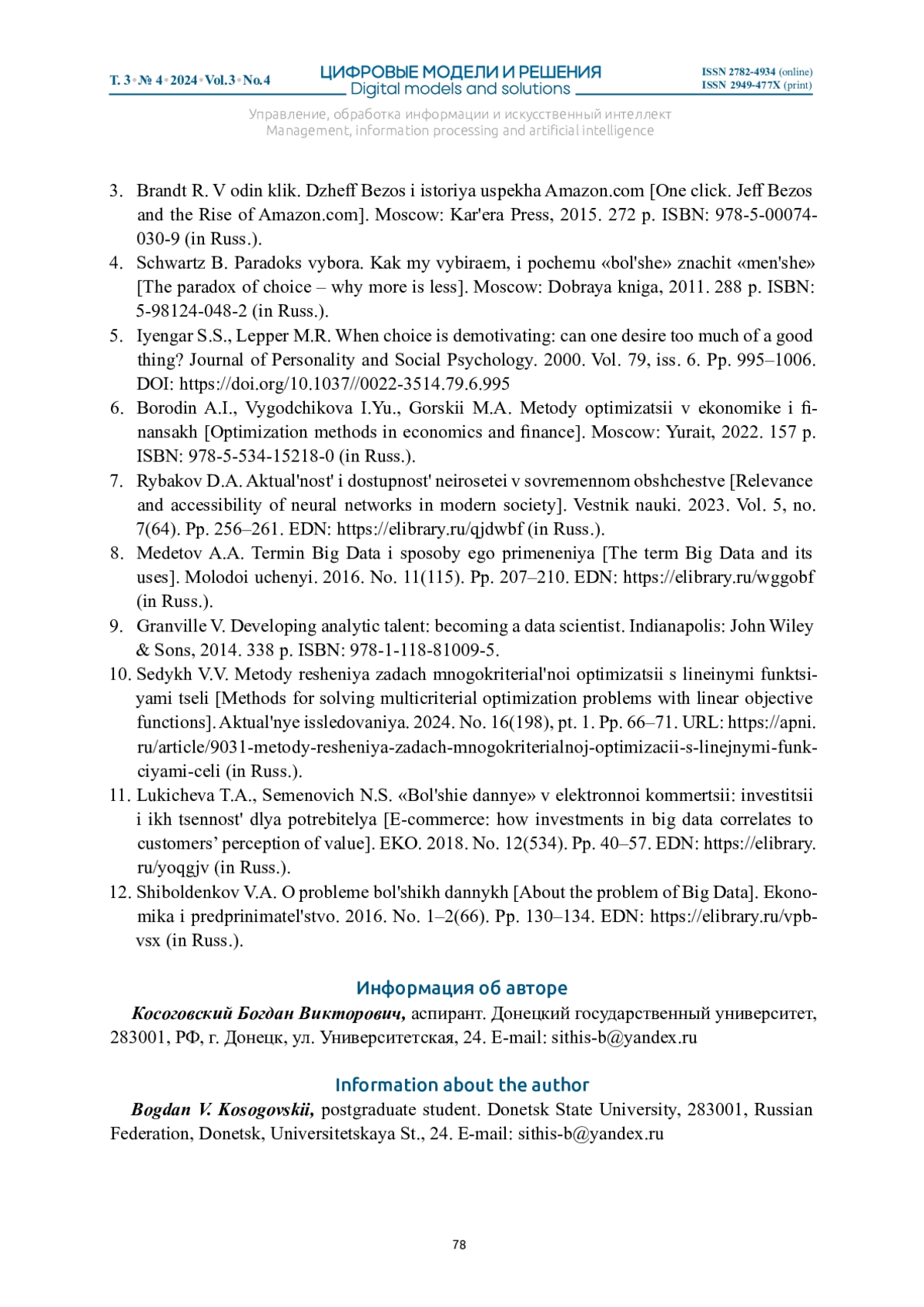 11. Лукичева Т.А., Семенович Н.С. “Большие данные” в электронной коммерции: инвестиции и их ценность для потребителя // ЭКО. 2018. № 12(534). С. 40-57. EDN: YOQGJV