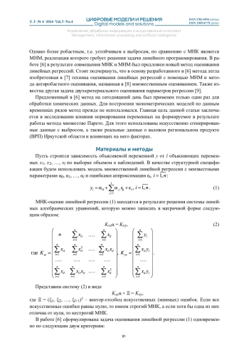 8. Носков С.И., Баенхаева А.В. Множественное оценивание параметров линейного регрессионного уравнения // Современные технологии. Системный анализ. Моделирование. 2016. № 3(51). С. 133-138. EDN: WMELBT
