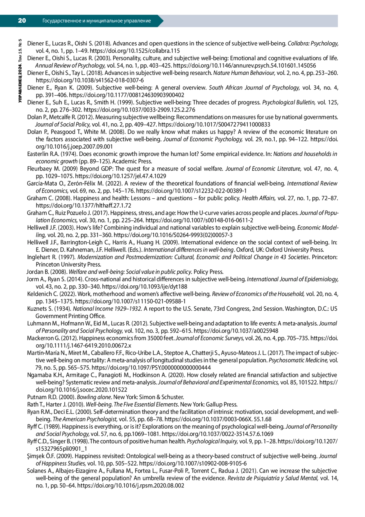23. Diener E., Lucas R., Oishi S. (2018). Advances and open questions in the science of subjective well-being. Collabra: Psychology, vol. 4, no. 1, pp. 1-49. DOI: 10.1525/collabra.115 EDN: YJSGTB
