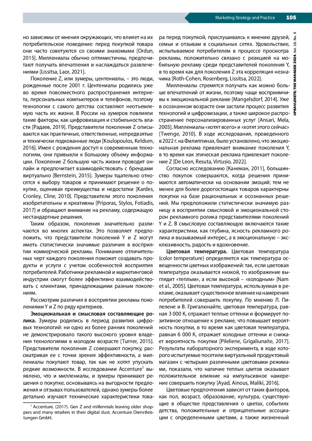 23. Munsch A. (2021). Millennial and generation Z digital marketing communication and advertising effectiveness: A qualitative exploration. Journal of Global Scholars of Marketing Science: Bridging Asia and the World, vol. 31, no. 1, pp. 10-29. DOI: 10.1080/21639159.2020.1808812 EDN: SQYPZX