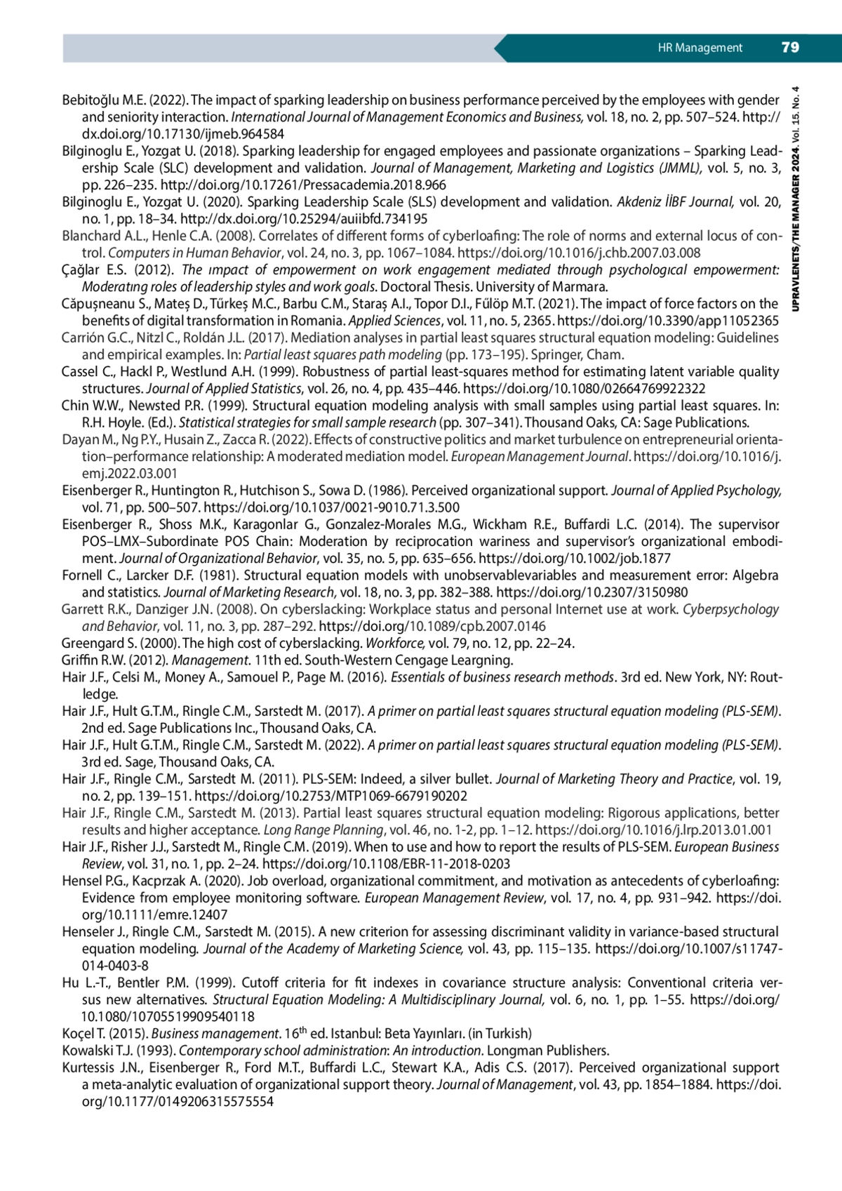 9. Bilginoglu E., Yozgat U. (2020). Sparking Leadership Scale (SLS) development and validation. Akdeniz İİBF Journal, vol. 20, no. 1, pp. 18-34. DOI: 10.25294/auiibfd.734195
