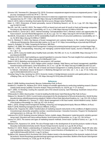 23. Bae G.K., Lee S.M., Luan B.K. (2023). The impact of ESG on brand trust and word of mouth in food and beverage companies: Focusing on Jeju island tourists. Sustainability, vol. 15, no. 3, 2348. DOI: 10.3390/su15032348 EDN: BYSYUZ