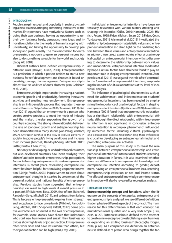 67. Tian L. (2022). The influence of work values of college students on entrepreneurial intention: The moderating role of psychological capital. Frontiers in Education, vol. 7. DOI: 10.3389/feduc.2022.1023537